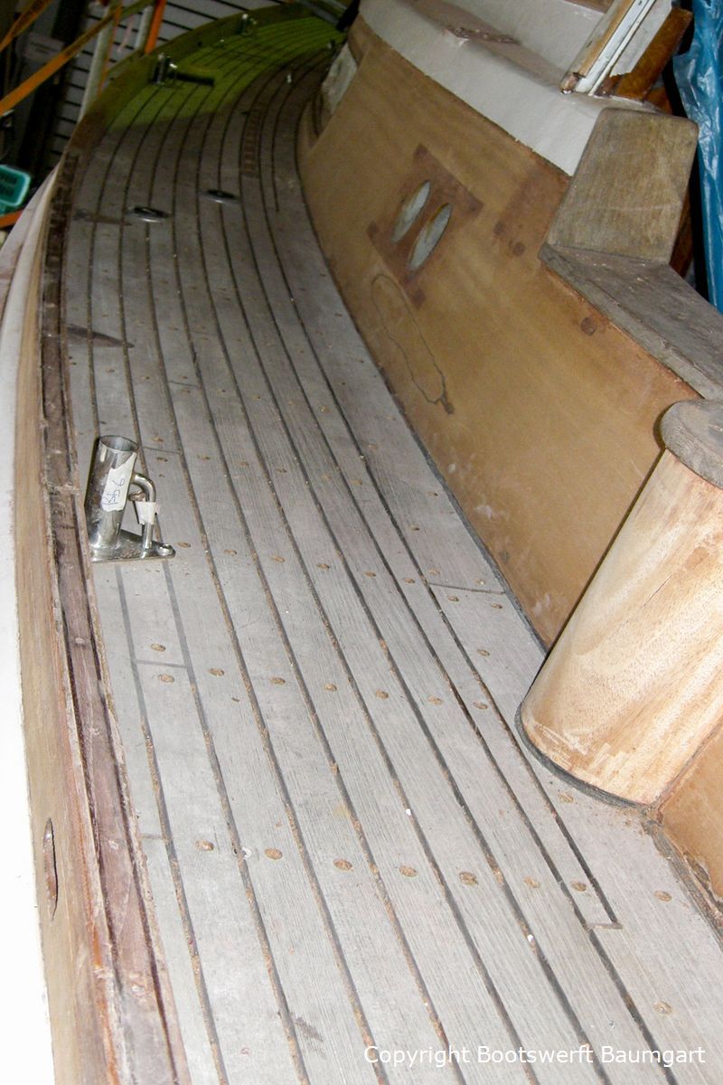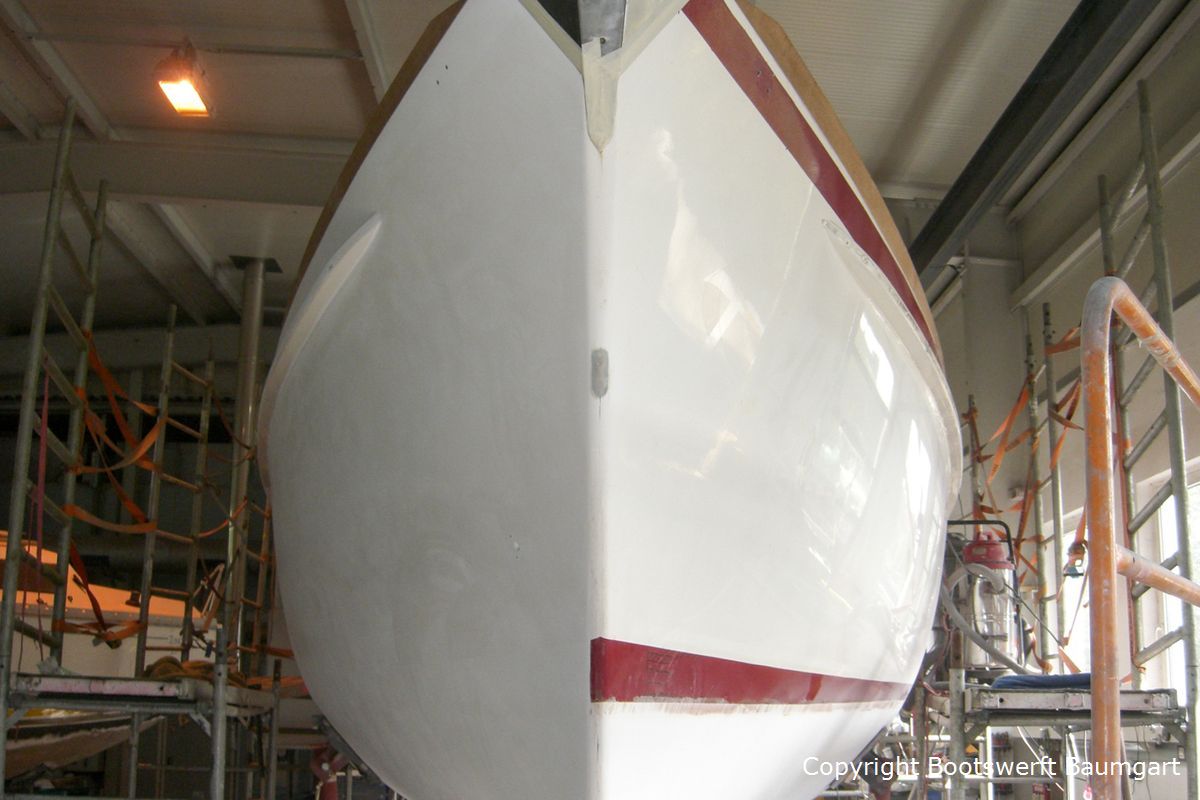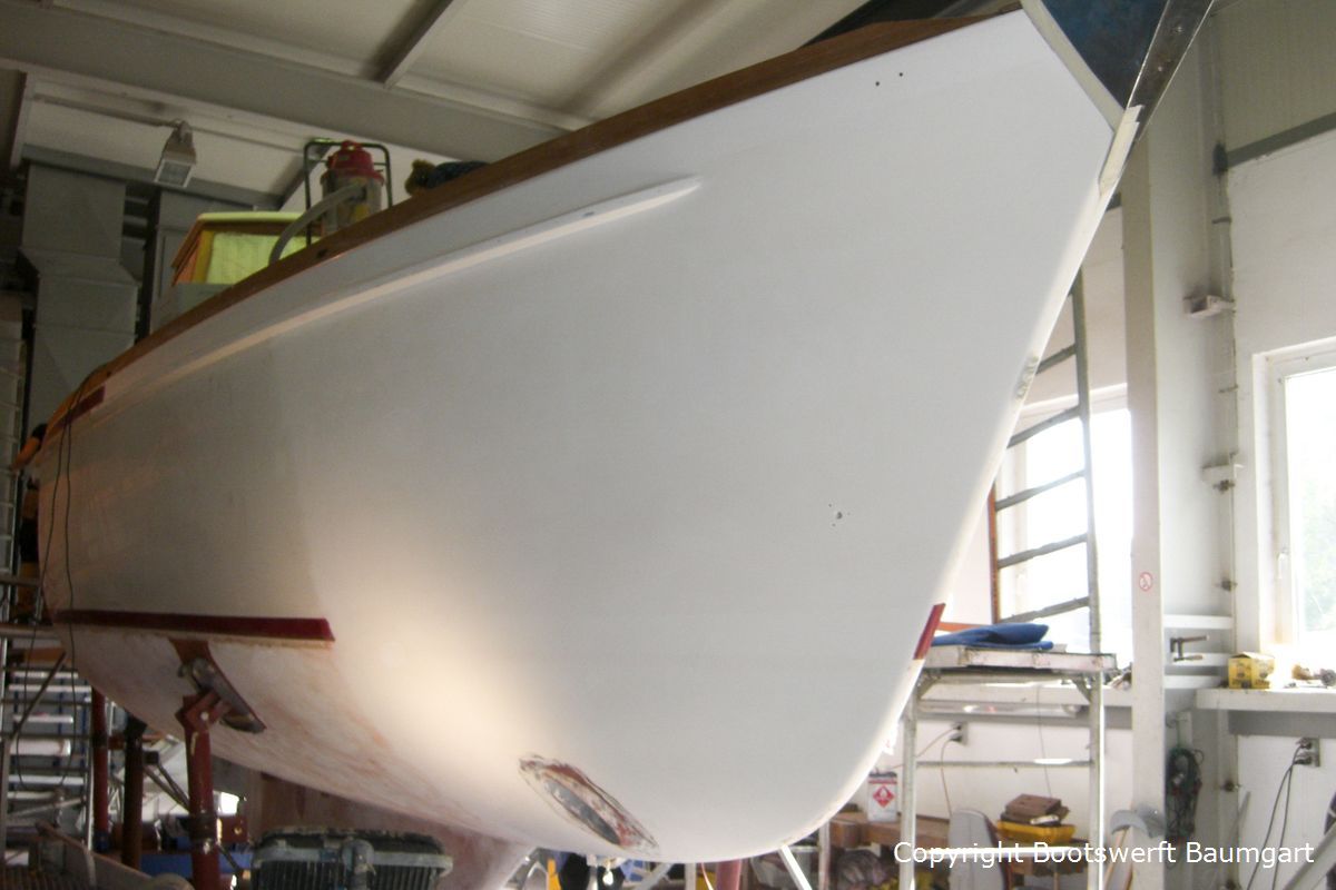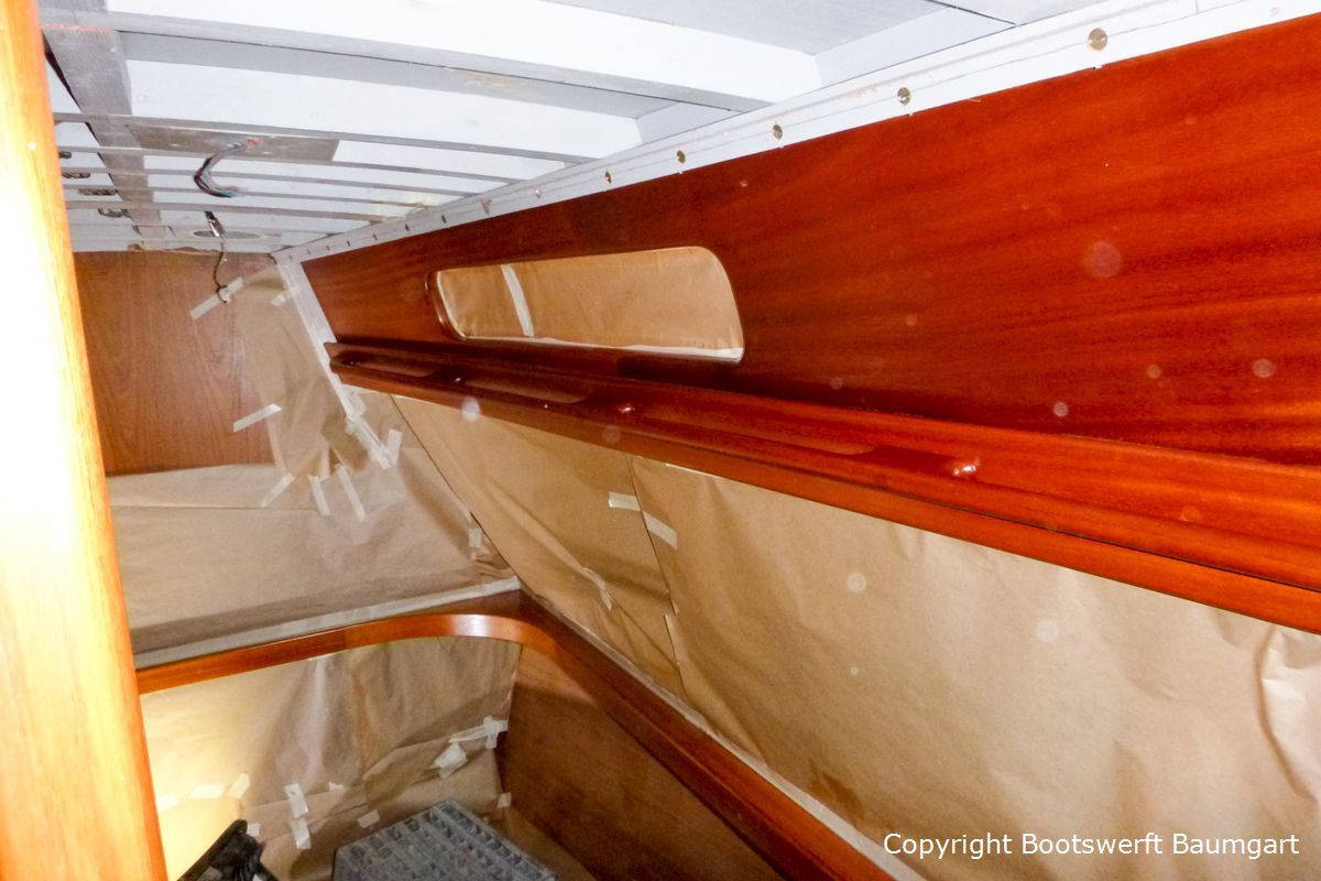 Die Vilm 106, ein auf Rügen gebauter Motorsegler, erhielt einen neuen Glanz. Von der Aufarbeitung des Teakdecks angefangen bis hin zur Lackneubeschichtung und einigen Arbeiten am Interieur ist ihr das Alter nicht mehr anzusehen. Auch ein neuer Tisch für die Plicht wurde nach Eignerwunsch mit Intarsienarbeiten angefertigt.