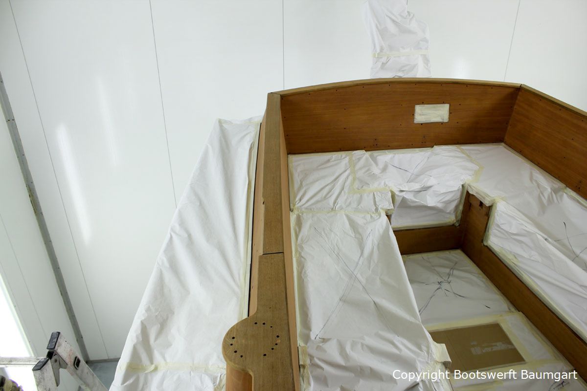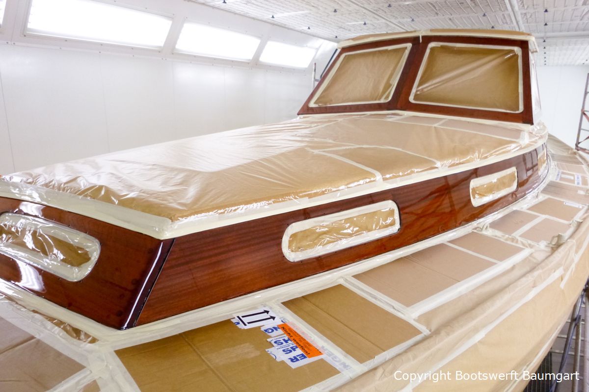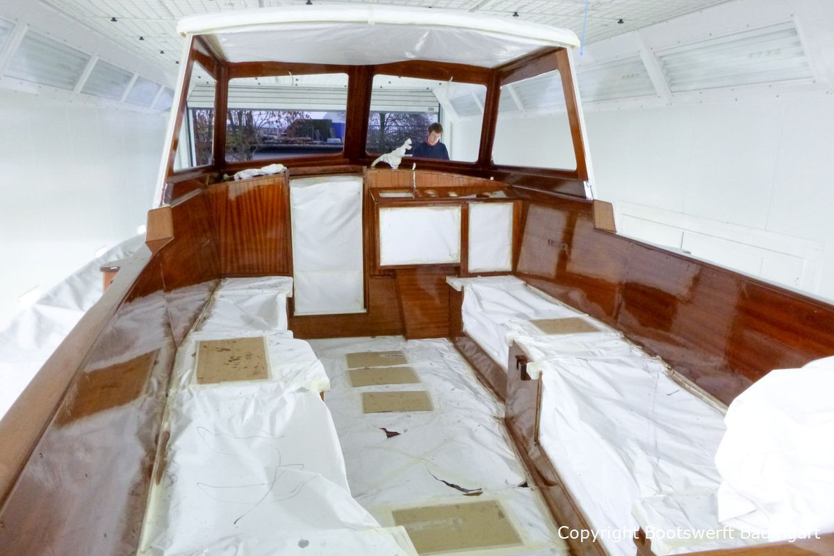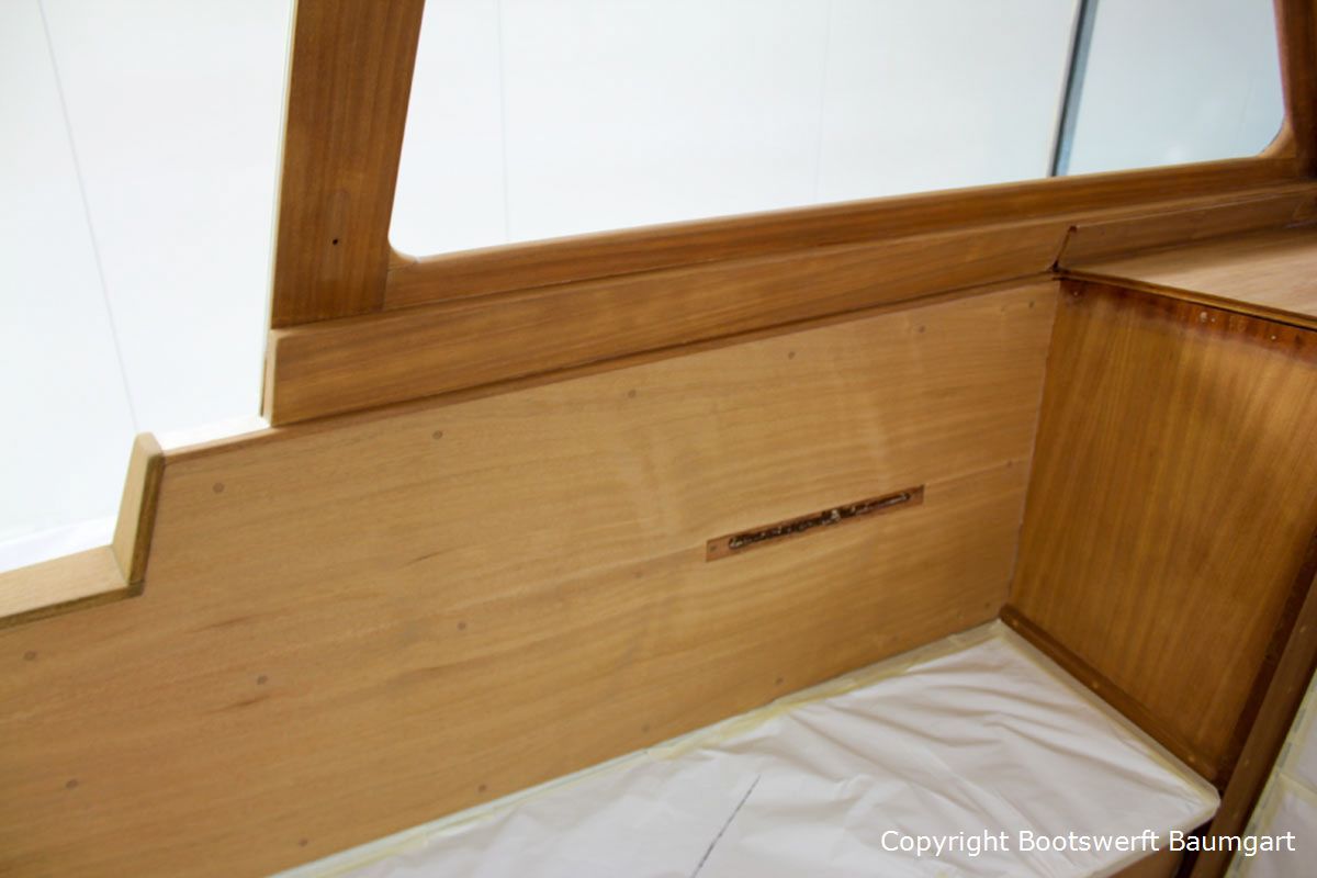 Die Vilm 106, ein auf Rügen gebauter Motorsegler, erhielt einen neuen Glanz. Von der Aufarbeitung des Teakdecks angefangen bis hin zur Lackneubeschichtung und einigen Arbeiten am Interieur ist ihr das Alter nicht mehr anzusehen. Auch ein neuer Tisch für die Plicht wurde nach Eignerwunsch mit Intarsienarbeiten angefertigt.